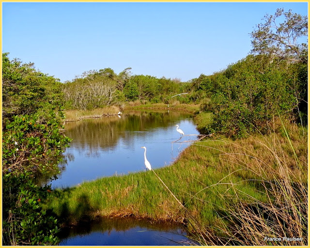 Along the trail at the Sanibel Garden Preserve, a fellow pointed out these two Black Racers intertwined on the Mangrove branches.... |