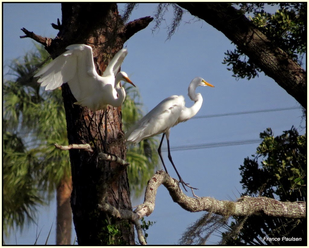 | Great Egrets resting with full bellies. |